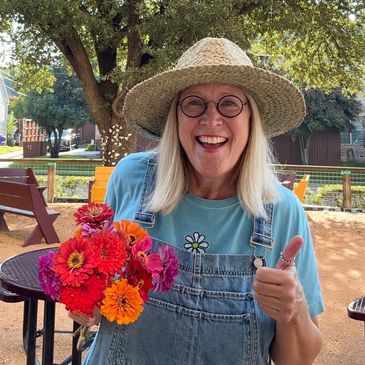 Kim Aman is a former public-school teacher, and Founder/Director of Grow Garden Grow, where she holds the title of Farmer Kim, integrating curriculum in schoolyards across North Texas. Additionally, she works with Grow North Texas, NTx School Garden Network, supporting the local food system. Her farming roots run deep from her Grandfather who grew crops in the rich soil of central Ohio. He taught her about the earth, soil, plants, animals and the beauty of a bite from a vine ripe tomato. She knows that she is fortunate to be doing what she loves and looks forward to every day that she can spend digging in the soil.